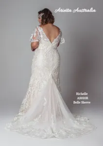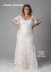 The flutter sleeve is an elegant and stylish way to incorporate a short sleeve on your bridal gown. This dress by Arietta Australia depicts the sleeves being worn on a plus size gown and shows how it creates a unique fresh feel perfect for warmer months in Australia.