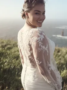 The collared bishop sleeve is perfect for the bride that wants to make a unique statement, this sleeve creates a sophisticated and formal feel which when paired with a delicate and feminine gown creates a perfectly balanced statement look, seen by this Maggie Sottero gown Clover.