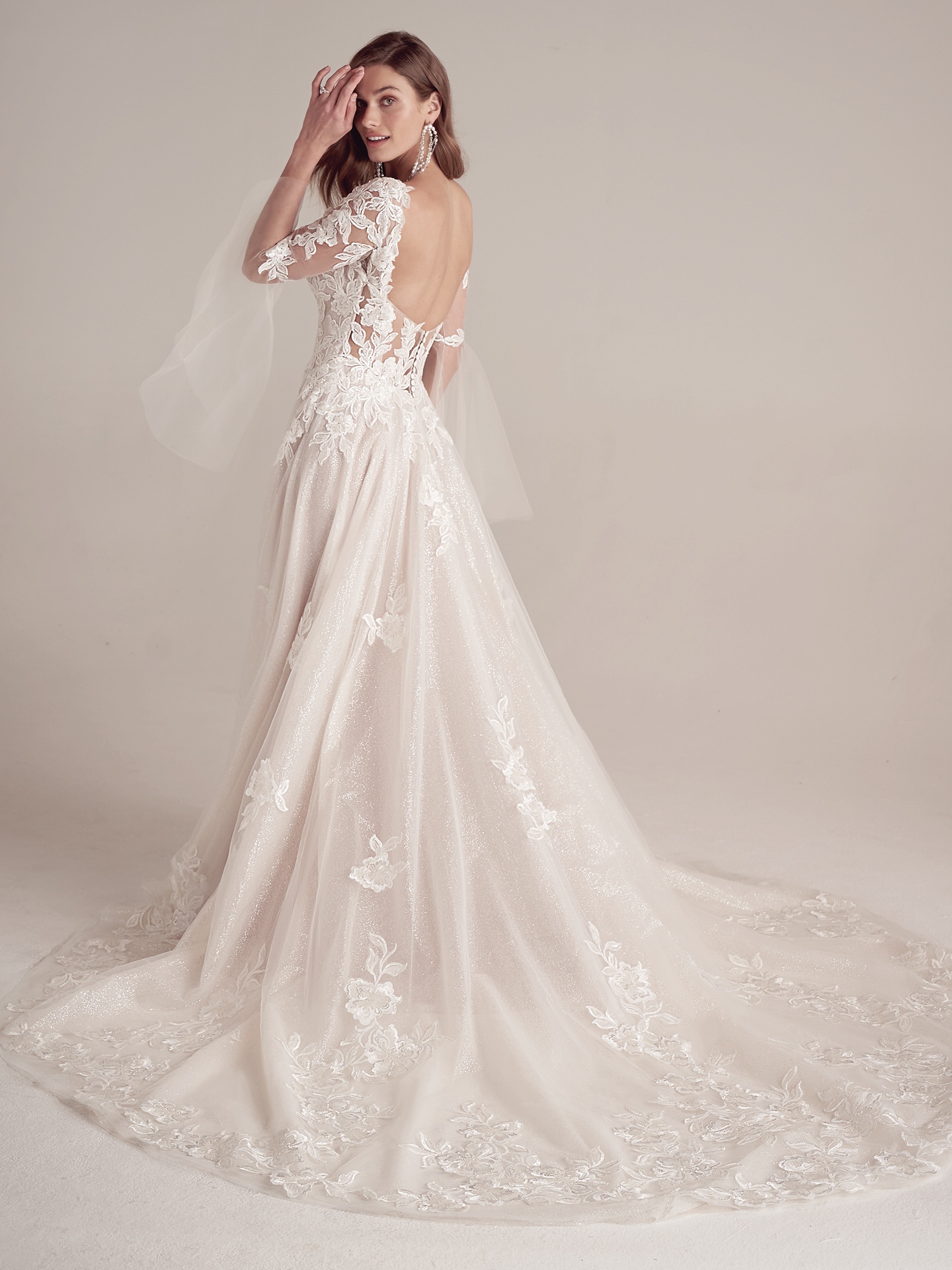 • Sequin lace motifs over glitter tulle